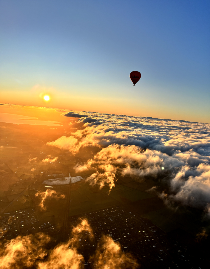 As the first light of day breaks across the horizon, your balloon gently lifts off the ground. The sensation is smooth, almost surreal – there’s no feeling of motion or speed, just the peaceful glide of drifting with the wind.
