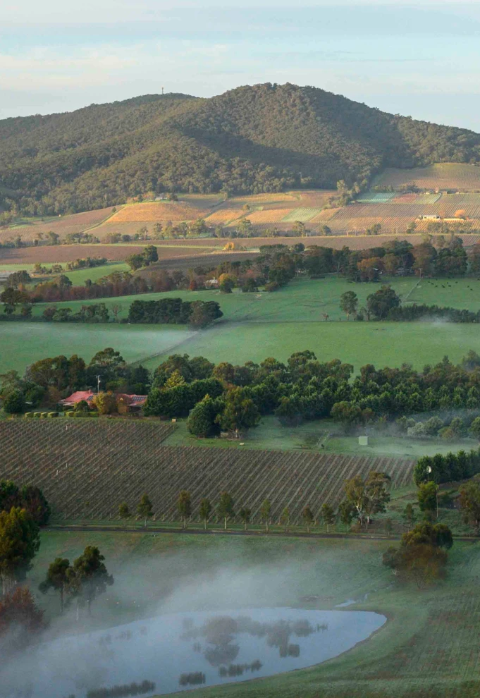 The Yarra Valley is one of Victoria’s most beloved destinations - and it’s even more spectacular from the sky. Known for its vineyards, gourmet food, and natural beauty, the valley becomes a peaceful, painterly landscape when viewed from a hot air balloon.
